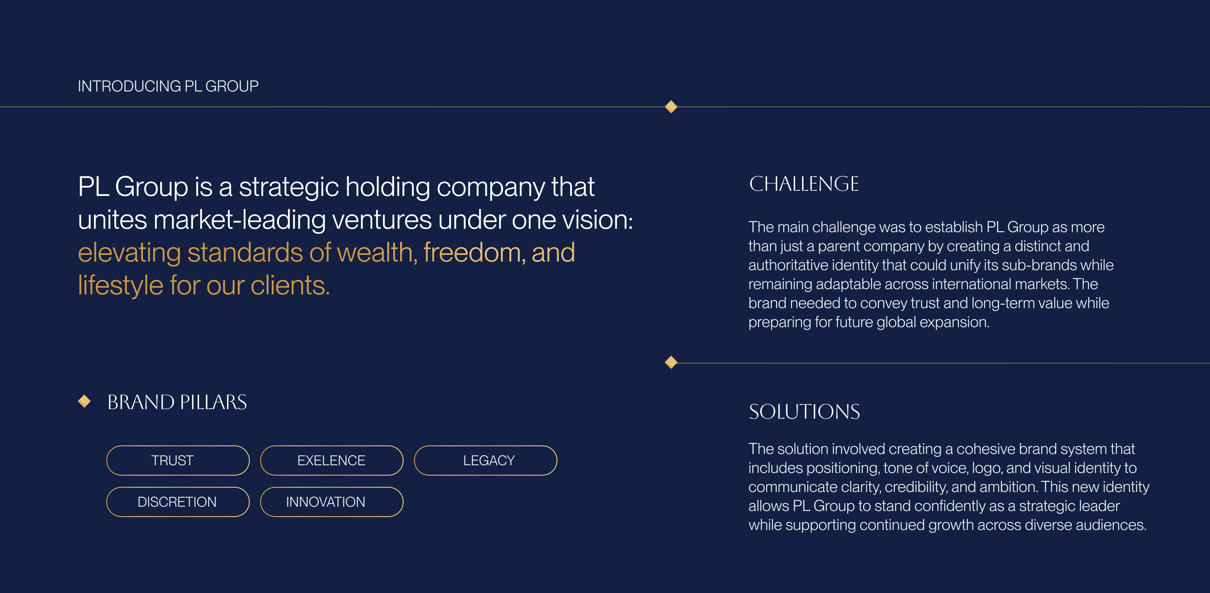 The main challenge was to establish PL Group as more than just a parent company by creating a distinct and authoritative identity that could unify its sub-brands while remaining adaptable across international markets. The brand needed to convey trust and long-term value while preparing for future global expansion.