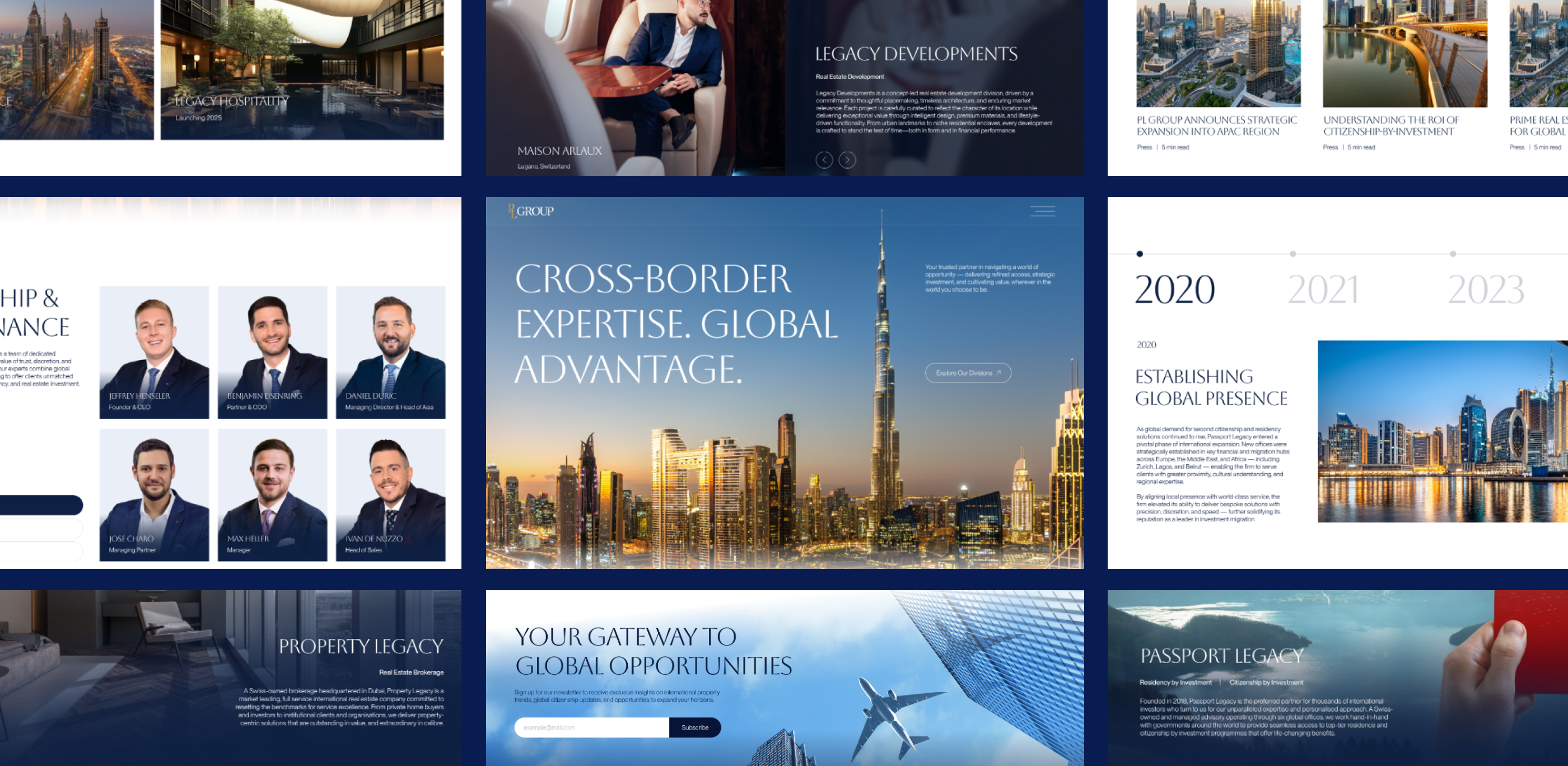 PL Group is a global firm based in Dubai, uniting Passport Legacy and Property Legacy under one brand. We helped establish a strong, credible identity that connects its sub-brands, builds trust across international markets, and supports long-term growth with a clear and cohesive brand system.